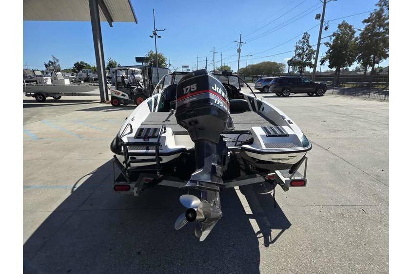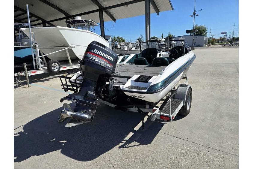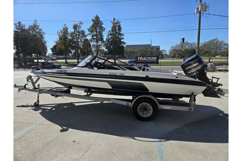 The Javelin 389 FS is a 19-foot fiberglass, outboard fishing boat with a beam of 7'5" and a net weight of about 1,590 pounds. It was a model from the mid-to-late 1990s and is part of the Javelin bass boat line, known for its racing-style appearance. This specific model was designed to be powered by a 175 horsepower outboard engine.