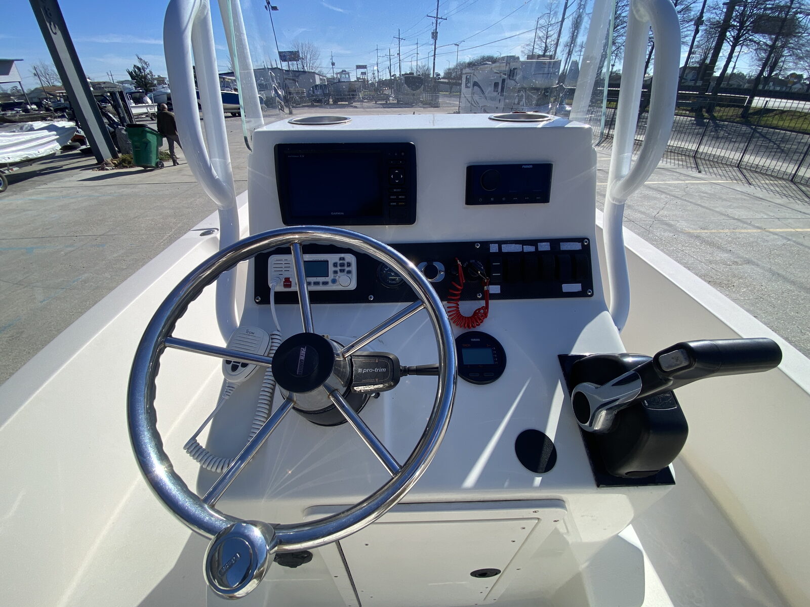 Extras include 5 newer batteries, Noco onboard charger, new washdown pump, auto bilge, new Yamaha tach & key switch, Millennial Marine seats, and more.