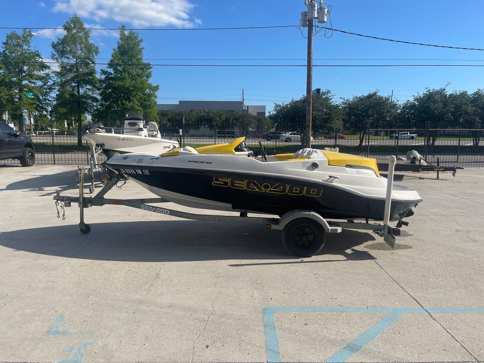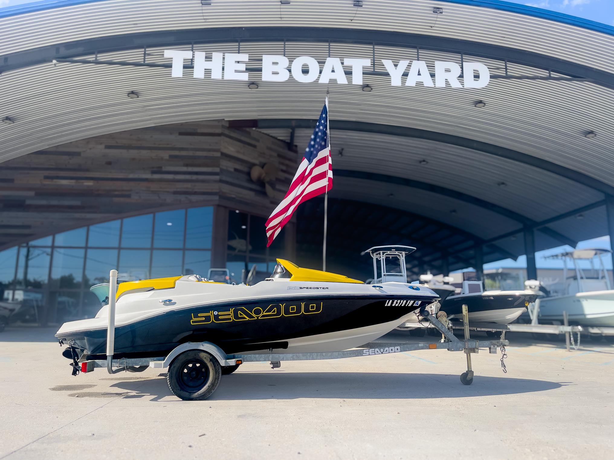 Stock: 86382010 Sea-Doo 150 SpeedsterRotax 155 hp.Singel Axel Trailer****EXCELLENT FINANCING AVAILABLE!****The compact, 15-foot frame. Bold looks that make it seem fast even when standing still. And up to 255 horses taking you on a 60 mph (97 Km/h) adventure. That’s the 150 Speedster, the very affordable, very nimble 4-seater that pulls off moves you thought were impossible for a boat. Compliments of Direct Drive Jet Propulsion, which gets you in and out of tight places without worry. The only thing your friends won’t love about this speed machine is you hogging the steering wheel.Boat Specs:Length: 5' 4' / 4.67 mBeam: 7' 1' / 2.16 mDraft: 12' / 30.5 cmDry weight: 1,454 lb. / 659 kgStorage capacity: 14.5 cu. ft. / .44 cu mSeating capacity: 4Weight capacity: 715 lb. / 324 kgFuel capacity: 21 gal. / 79.4 Contact Seth for more information:Call: (504)295-2787