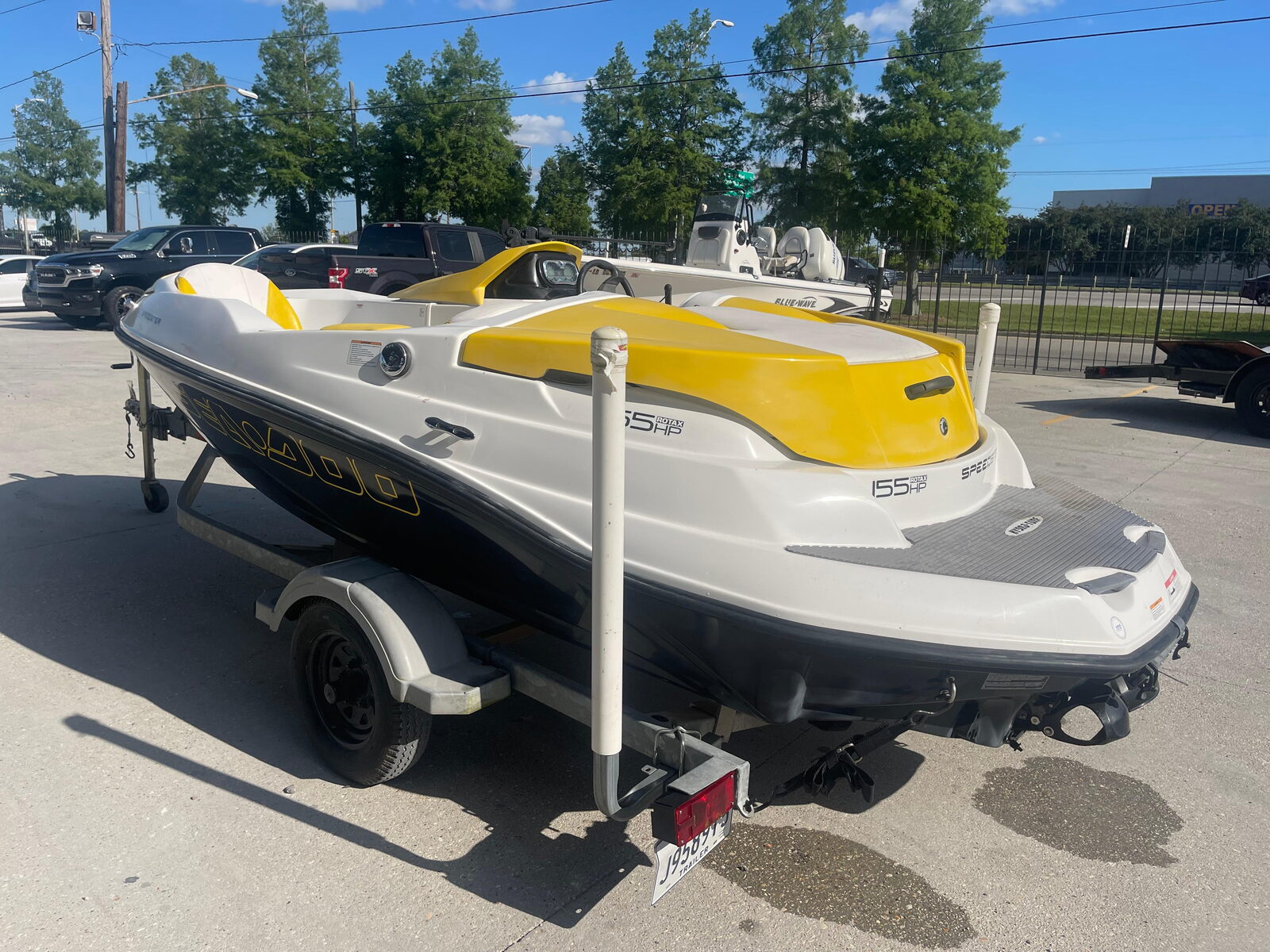 Stock: 86382010 Sea-Doo 150 SpeedsterRotax 155 hp.Singel Axel Trailer****EXCELLENT FINANCING AVAILABLE!****The compact, 15-foot frame. Bold looks that make it seem fast even when standing still. And up to 255 horses taking you on a 60 mph (97 Km/h) adventure. That’s the 150 Speedster, the very affordable, very nimble 4-seater that pulls off moves you thought were impossible for a boat. Compliments of Direct Drive Jet Propulsion, which gets you in and out of tight places without worry. The only thing your friends won’t love about this speed machine is you hogging the steering wheel.Boat Specs:Length: 5' 4' / 4.67 mBeam: 7' 1' / 2.16 mDraft: 12' / 30.5 cmDry weight: 1,454 lb. / 659 kgStorage capacity: 14.5 cu. ft. / .44 cu mSeating capacity: 4Weight capacity: 715 lb. / 324 kgFuel capacity: 21 gal. / 79.4
