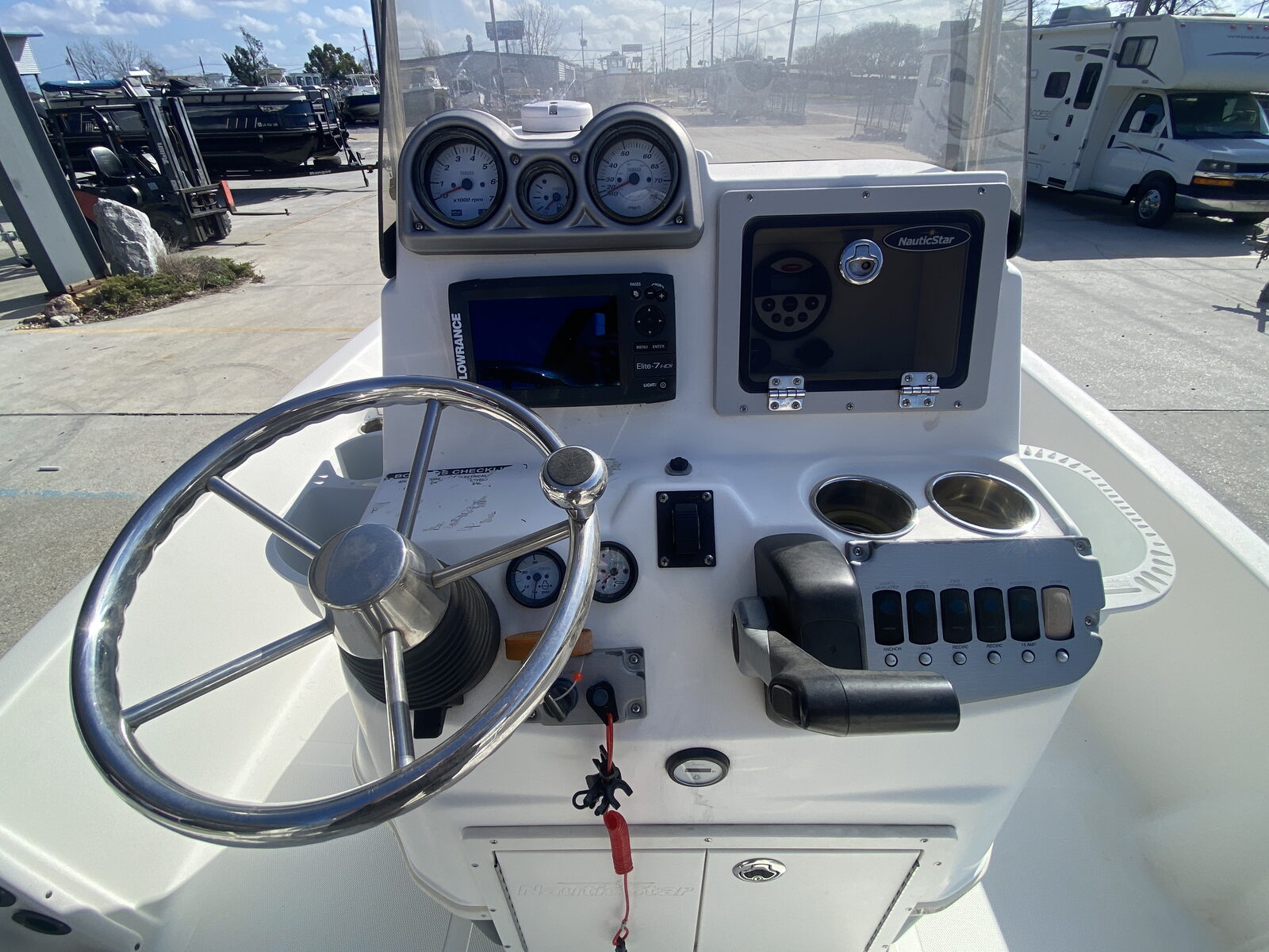 Lowrance Elite 7 Electronics – Equipped with a Lowrance Elite 7 GPS/fishfinder for accurate navigation, sonar imaging, and finding fish with confidence.