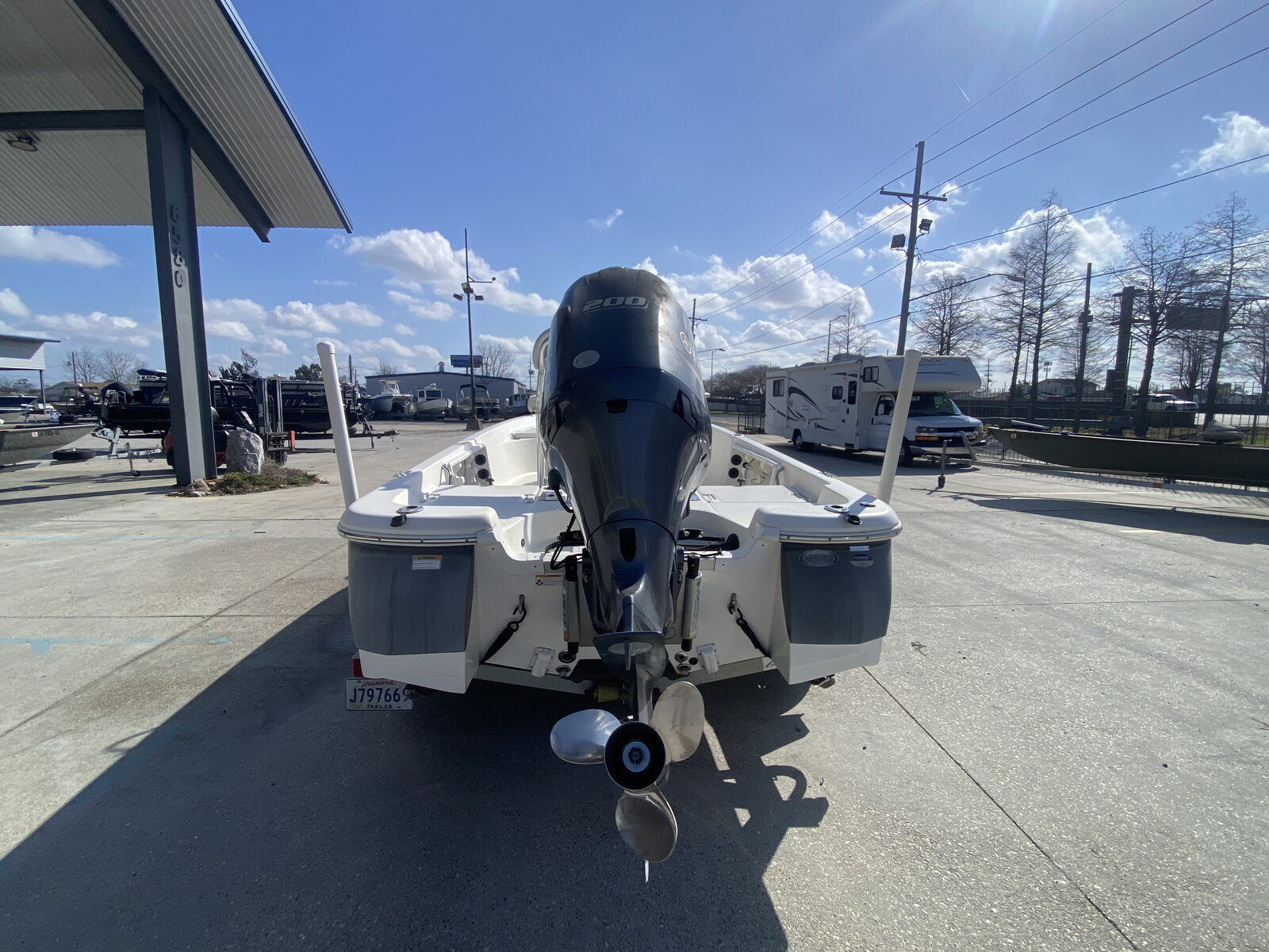 Powered by a Yamaha 200 HP Four-Stroke Outboard – Reliable, fuel-efficient, and powerful, this four-stroke engine delivers strong hole shot, smooth mid-range performance, and dependable offshore and inshore capability.