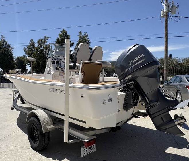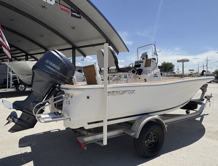 This is a New 2014 Sea Fox 180 Viper Bay with a Yamaha F115XA 4 Stroke 25", mechanical controls & analog guages. Leaning post w/backrest/cooler. Swim platform w/ladder. Bahama Blue Hull Color