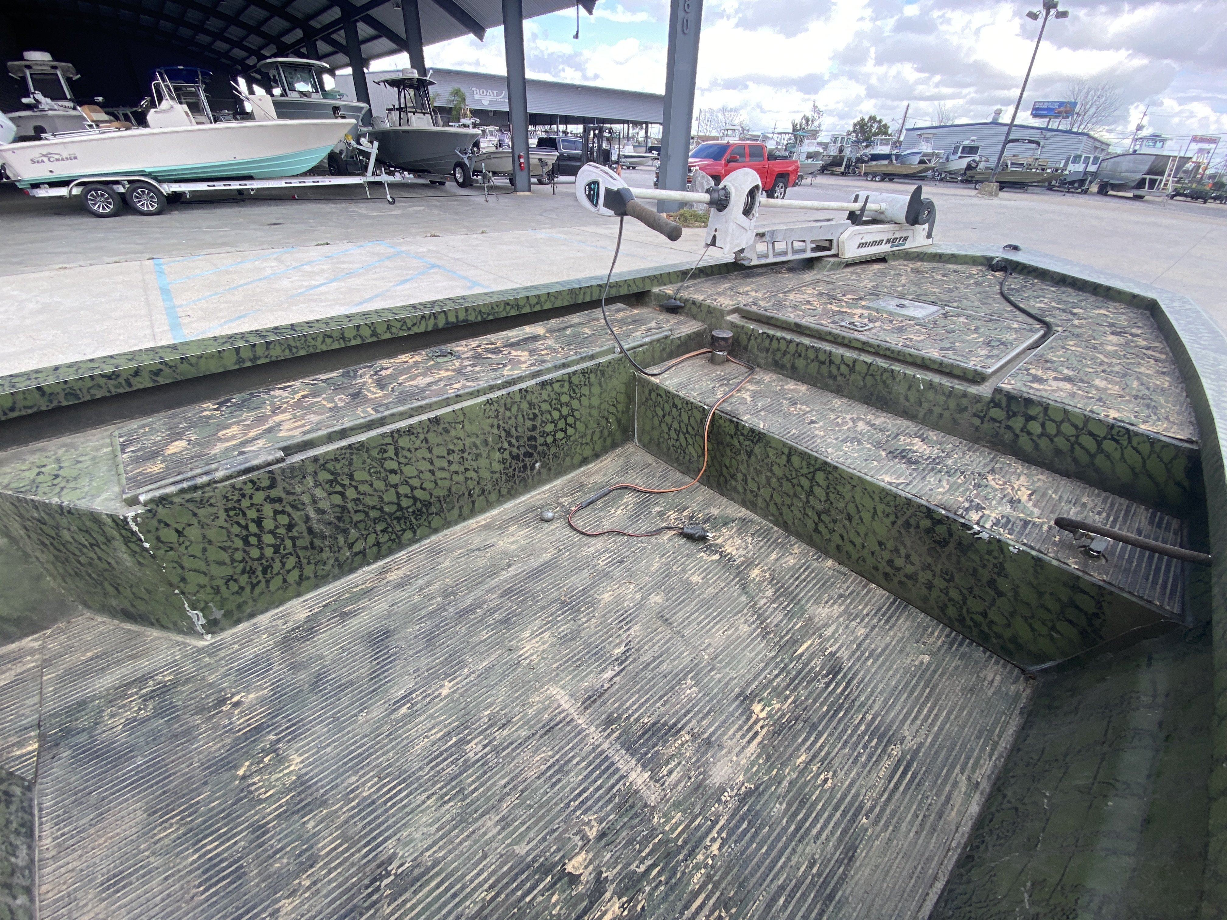 Clean 2016 Charles Leonard Skiff set up right and ready to fish. Charles Leonard is legendary for building tough aluminum boats, and this one is a great example. Simple, lightweight, and built to run shallow while still being quick across the bays—perfect for fishing anywhere along the coast.