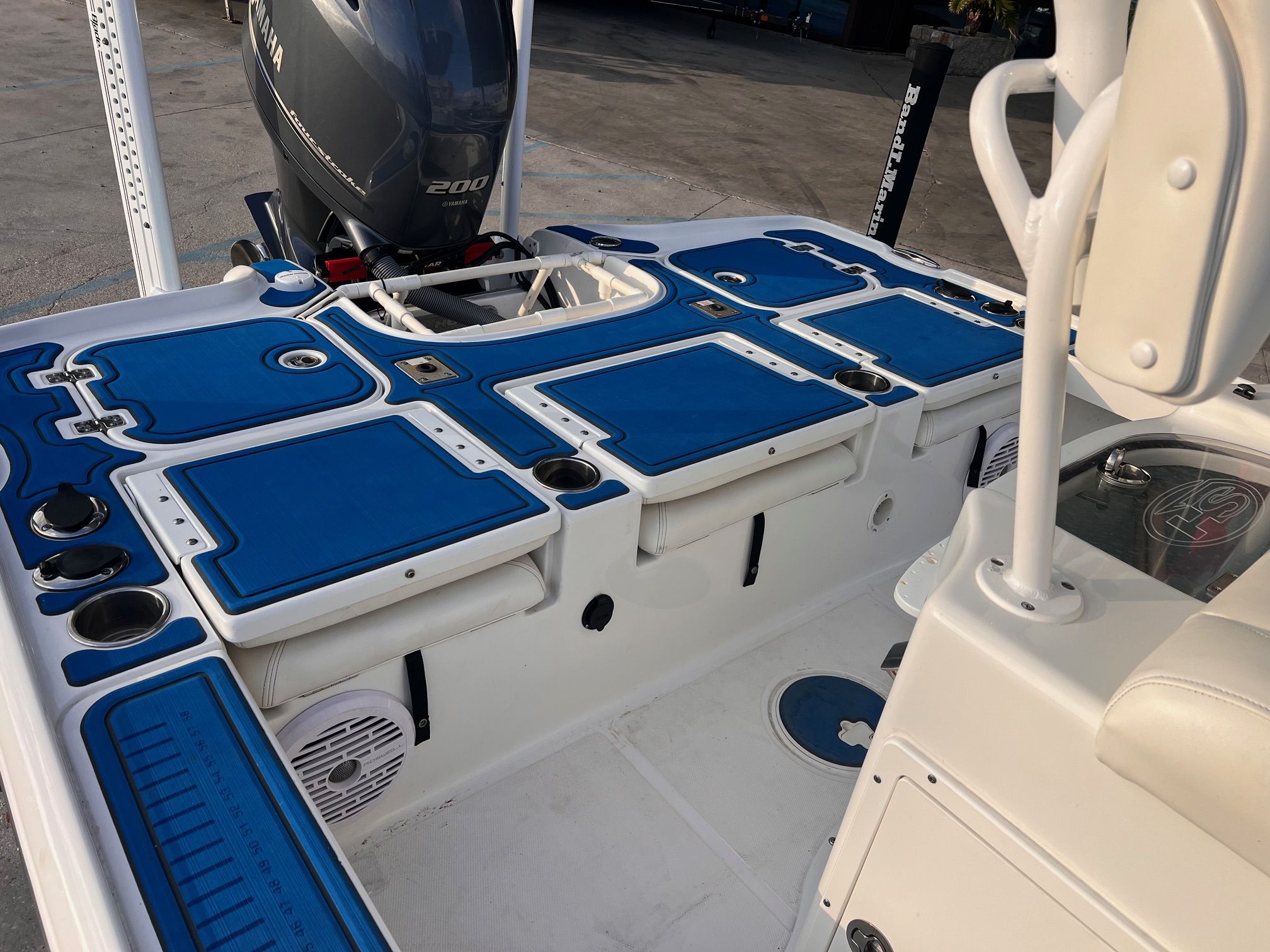 Contact Matt Chehardy for more info!I’m Happy to work on price and clearly explain the condition and performance, so we at The Boat Yard can find the best possible fit for your needs. We have the best nation wide in house financing and on site experts to help you value your current boat to sell or get you upgraded today!2019 Sea Hunt BX 22 BR – Yamaha 200 Four StrokePowered by a reliable Yamaha 200HP Four Stroke outboardGarmin Kraken trolling motor for precise boat controlSeaStar hydraulic jack plateTrim tabs for improved ride and efficiencyLeaning post with built-in livewellDual 10’ Power-Pole Blades for shallow-water anchoringPremium JL Audio sound systemNew SeaDek flooring throughoutGarmin graph on the bowSimrad GPS at the helmHydraulic steering with tilt wheelHard T-Top with rocket launchers, integrated speakers, and glove boxRemovable swim ladderTriple jump seats on the rear fishing deck for added seating and versatilityComes with a dual-axle aluminum trailerTurn-key and ready to fish — perfect for inshore fishing or running out to the islands. A well-equipped, versatile bay boat that’s loaded with premium features and ready for the water. Contact Matt Chehardy for more info!