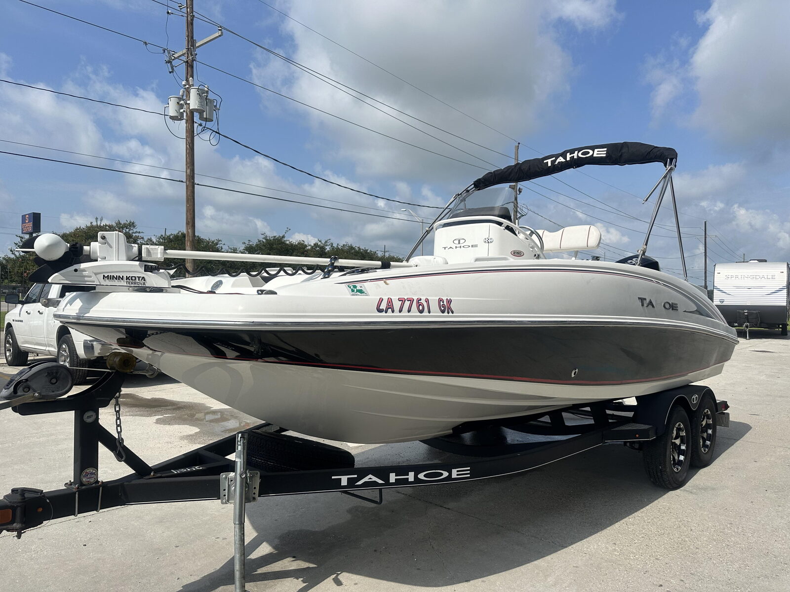 Stock # 24642019 Tahoe 2150 CCMercury 200 Four Stroke Tandem Axle Trailer*** FINANCING AVAILABLE! ***We're excited to introduce you to the all-new TAHOE 2150 CC deck boat. It combines sleek lines and pontoon-level features and comfort with the 360-degree fishability of a saltwater fishing boat, ensuring this model is ready to become your family's new entertainment center.For family, entertaining and fun, the fore and aft lounge seating offers the comfort you want for all day relaxing, and the Bimini top is perfect for escaping the sun. Additionally, fore and aft swim platforms with boarding ladders are ready-made for the perfect cannonballs.Or, take advantage of the rod holders, aerated livewell and insulated fishboxes as you fish away the day from anywhere on the boat's perimeter. Versatile and stylish—that's the new TAHOE 2150 CC deck boat.SpecificationsLength: 21 ft. 1 in.Beam: 8 ft. 6 in.Bottom width: 7 ft. 2 in.Max. recommended HP: 225 hpFuel capacity: 46 gal.Max. person capacity: 10 personsMax. person weight: 1475 lb.Max. person, motor & gear weight: 2300 lb.Interior depth: 32.5 in.Deadrise: 20 degreesBoat Includes: Minn Kota iPilot TMLowrance GPSTurbo SwingContact Seth for more info:Call: (504)295-2787