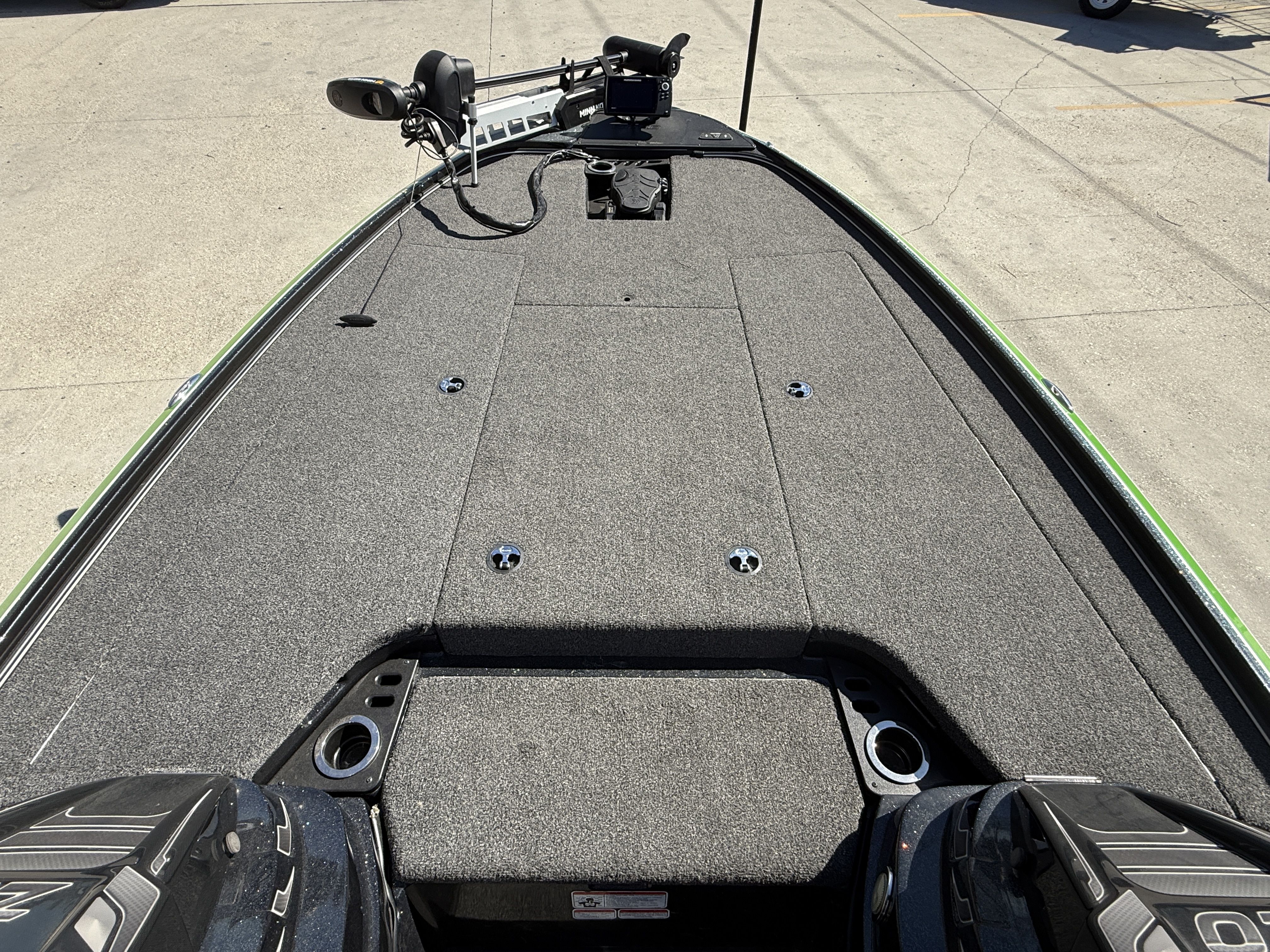 - 42.5-sq.-ft. (4.0-sq.-m) anti-fatigue, padded bow deck w/port & starboard rod lockers w/lift assists for rods up to 8’ (2.44 m) & center storage locker w/Tackle Management System