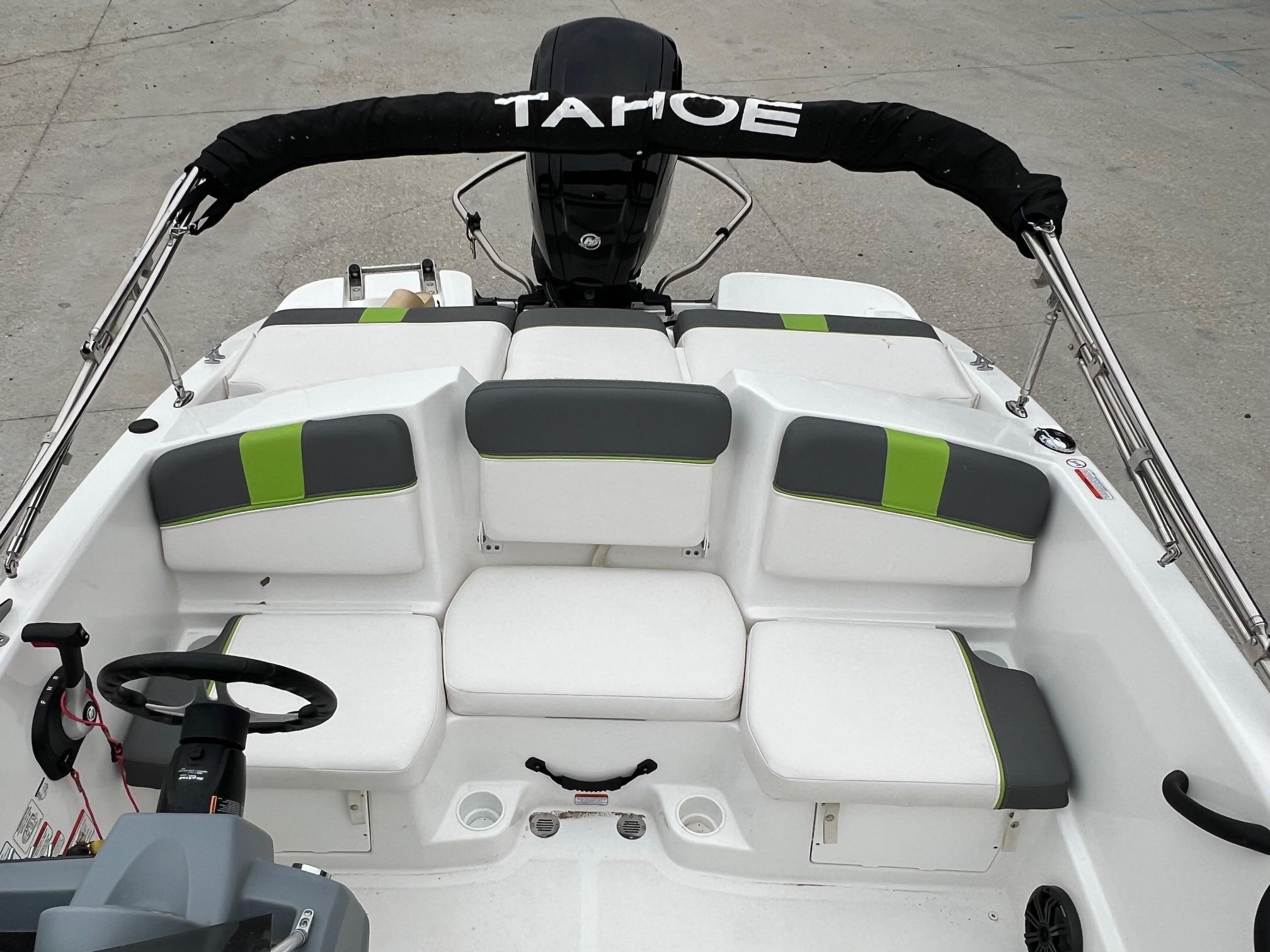 Featuring all-new composite construction, this TAHOE® is ready for a lifetime of fun and adventure. The T16 comes standard with an automatic bilge pump and a depthfinder that add capability to the spirited performance. Twin bow lounges open to reveal storages and the aft features a wide lounge that matches the cockpit bench seating with flip-open driver and passenger seats. Rounding out this package is a standard trailer and 60-horsepower Mercury® FourStroke for economical and reliable performance.