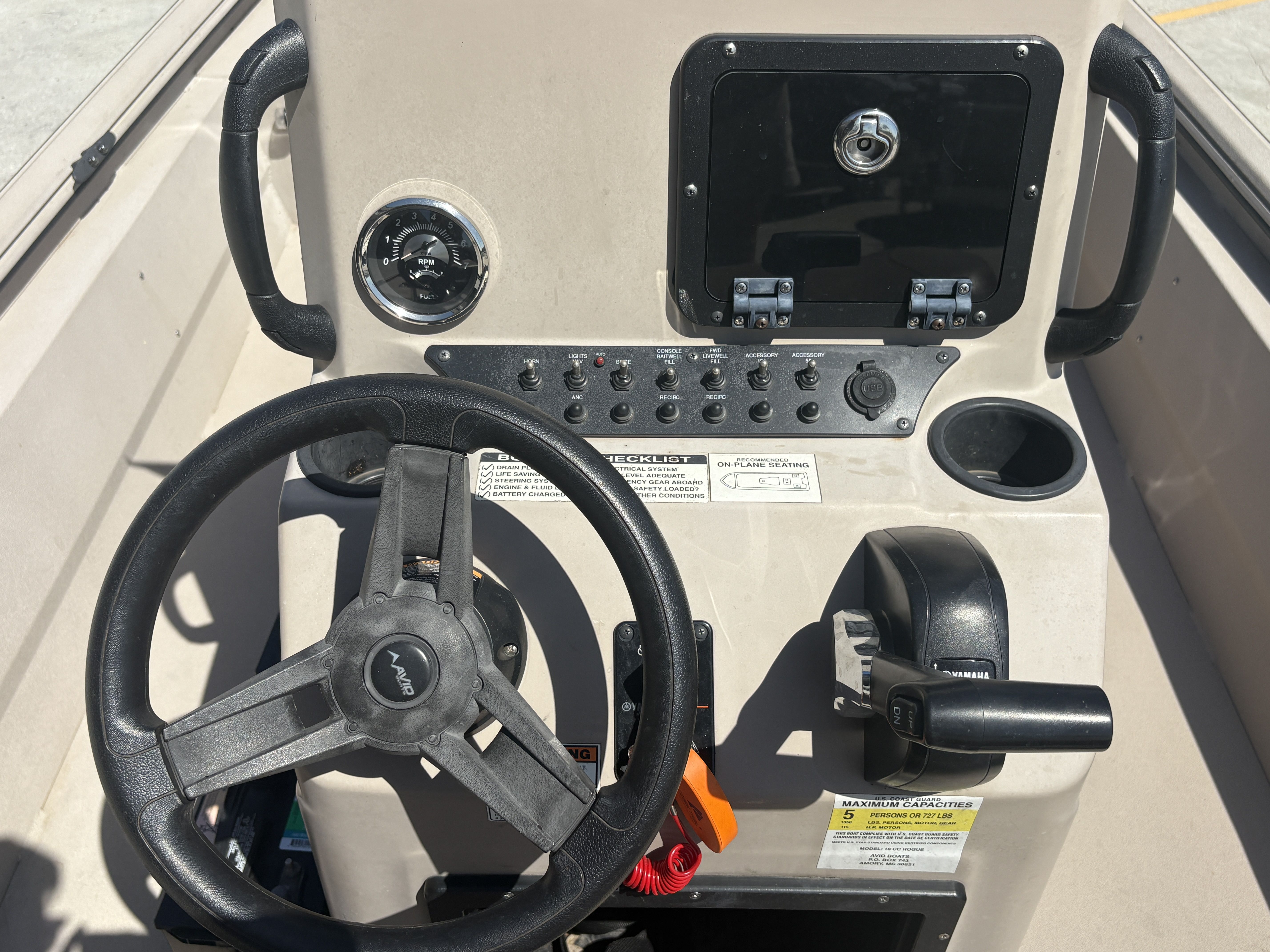 The Avid 20 Rogue is a versatile 20-foot center console aluminum boat known for its performance, durability, and features like a livewell, baitwell, storage, and optional Seadek flooring. Standard equipment includes high-speed aerator pickups, an auto bilge pump, a marine-grade electrical system with waterproof switches, and Versatec gunnels with accessory tracks. It can be powered by various Yamaha engines, with a maximum horsepower of 150 HP, and offers options like different livewell sizes, custom finishes, and a specialized "Gamekeeper" Edition.