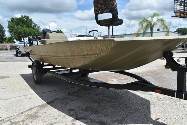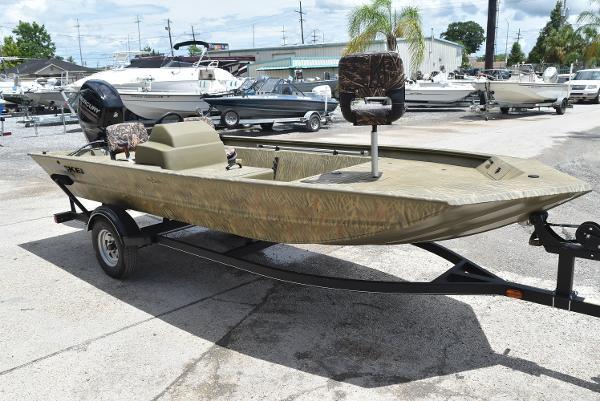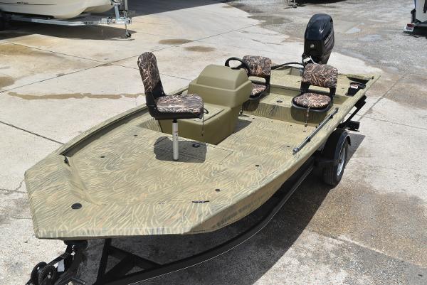 Experience the perfect blend of space, stability, and power with the TRACKER® GRIZZLY® 1754 SC. At 17' 1" long and 6' 6" wide, this aluminum jon boat offers ample room and can be powered by up to a 75HP motor for thrilling rides.